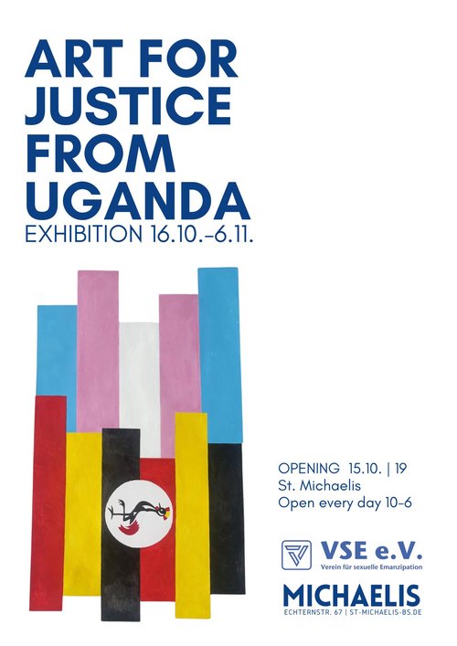 Am 15. Oktober um 19 Uhr eröffnen die Initiative Prism Empowerment and Development Initiative (PEDI) Uganda, der Verein für sexuelle Emanzipation (VSE) und die Kirchengemeinde St. Michaelis eine Ausstellung mit dem Titel 'Art for Justice in Uganda'.
