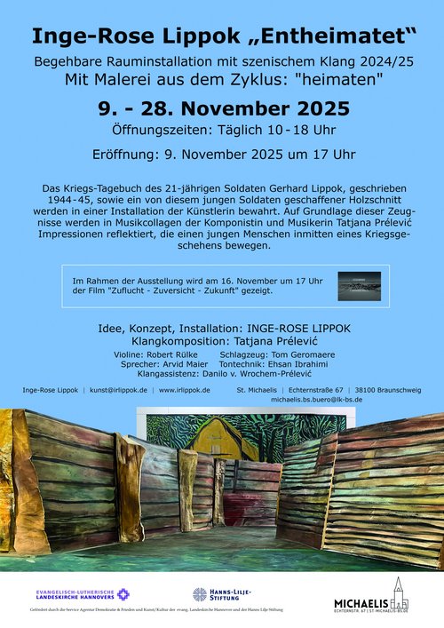 Ausgangspunkt ist das Kriegs-Tagebuch des 21-jährigen Soldaten Gerhard Lippok, Vater der Künstlerin, mit Gedanken und Erinnerungen aus Stationen eines Soldatenlebens, geschrieben in den Jahren 1944 bis 1945, sowie ein von diesem jungen Soldaten geschaffener Holzschnitt (einer Hütte, entstanden in Bosnien), die Gedanken und Erinnerungen aus Stationen eines Soldatenlebens bei den Nachtjägern in Lettland, Ungarn, Bosnien, Serbien, Frankreich, Österreich bewahren.